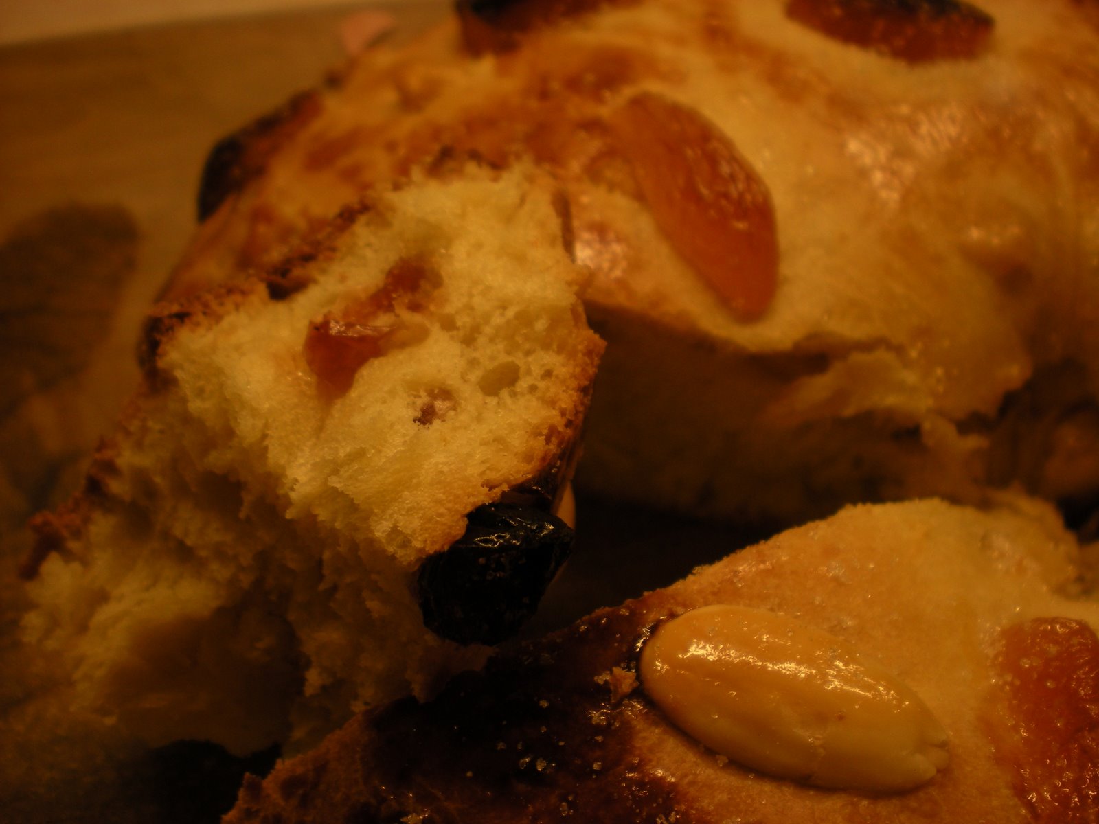 Rosca de Reyes gets most of its sweetness from fruit, not sugar. And it is more like a bread than a cake. The dough once it’s baked reminds me of a panettone.