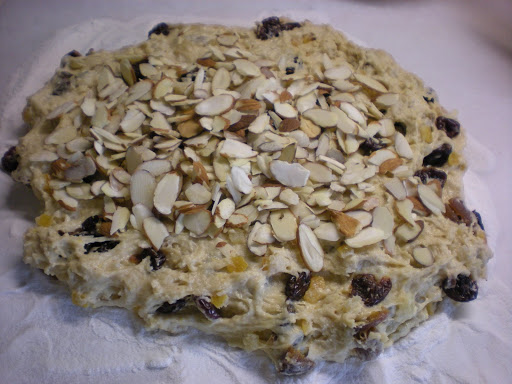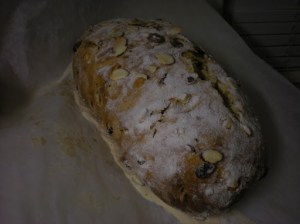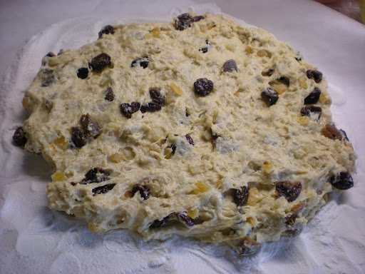Last week I promised to post instructions about stollen. Since I am all about keeping promises (except for volkornbrot, which seems to be lost to the winds of time), here it is. I wanted to keep experimenting because there were some things I thought could be improved, but as it is I like this recipe a lot.