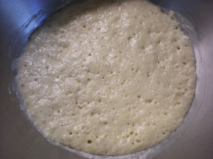 7. Once it is all incorporated, cover it with the plastic wrap from the sponge and let rise about an hour.