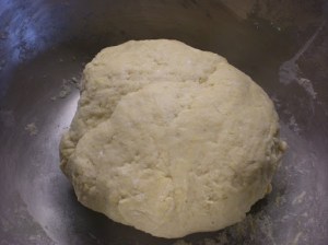 6. Now here is the part I hate. It involves bringing everything together. The reason I hate it is because the dough gets really slimy and hard to work with.