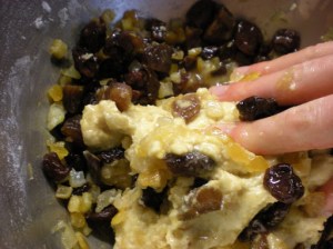 I also add a few handfuls of flour because it’s so wet. I want to find out if I can just add the brandy first and then if the dough needs more moisture add the water.