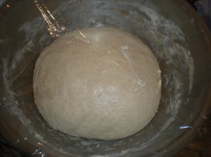 This is a picture of the bread rising after a few hours and one stretch-and-fold.