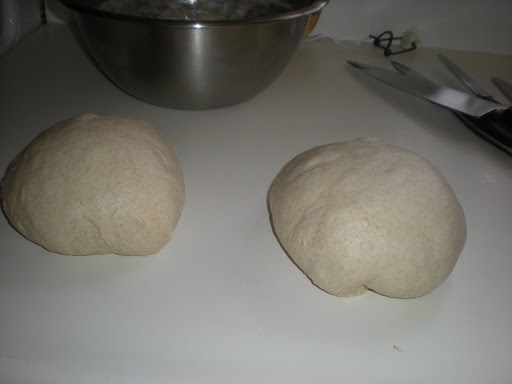 The bread was divided into two loaves for the final rise.