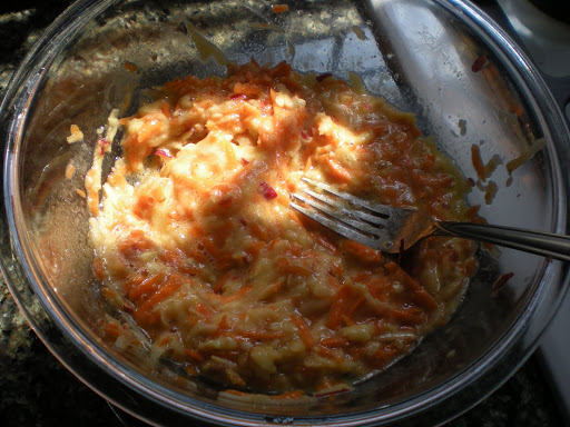 I had carrots and bananas on hand, and made quick work grating an apple for the applesauce.