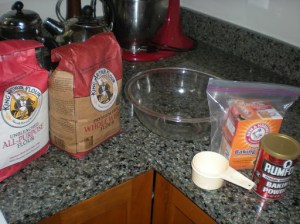 Mix up two cups flour and one cup of sugar. I did one cup each of Whole Wheat and AP flour. Next time I think I’ll cut way down on the sugar.
