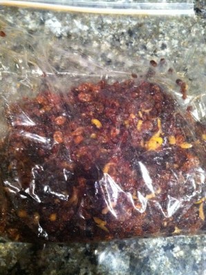 I pour the soaked fruit and juices into a blender and blend until thick and still a bit chunky (like tomato sauce)