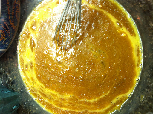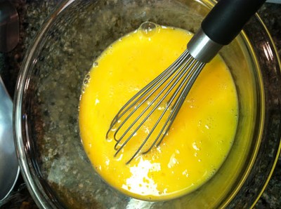 3. In a second medium bowl, whip the eggs with a dash of rum.  Set aside.