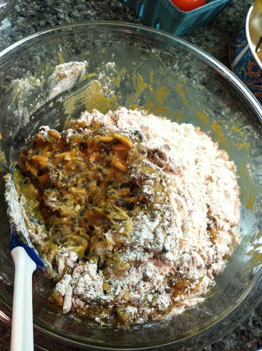 6. Add your rum-soaked fruit and nuts to the wet mixture.