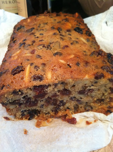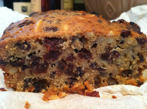 Fruitcake, if you don’t know, is that much-maligned dessert bread chock full of fruit, nuts, spices, and a whole lotta alcohol.  When you think (or, before meeting Mr. Bread Maiden’s kin, what I THOUGHT) of fruitcake looked something like this: