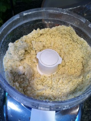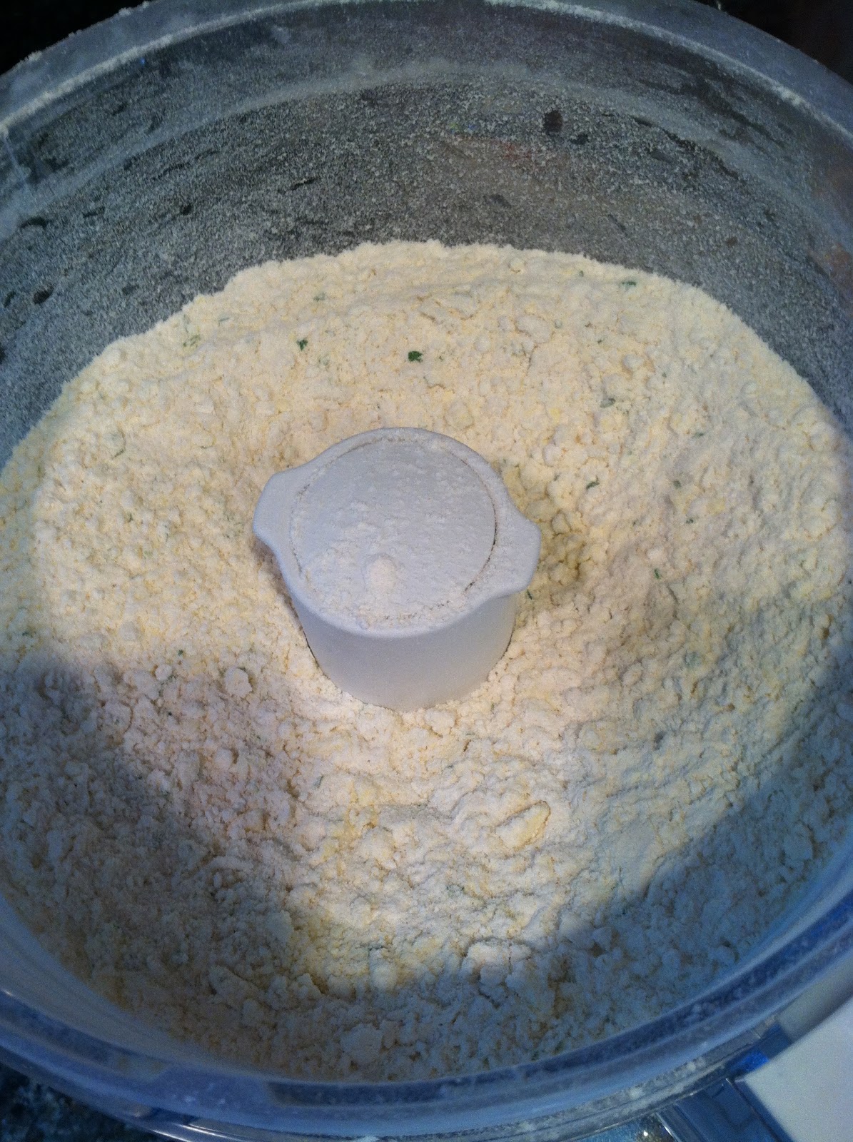 4. Add the ice water, a spoonful at a time, pulsing between each addition. The dough will slowly come together. First it will look like this, but keep adding more water.