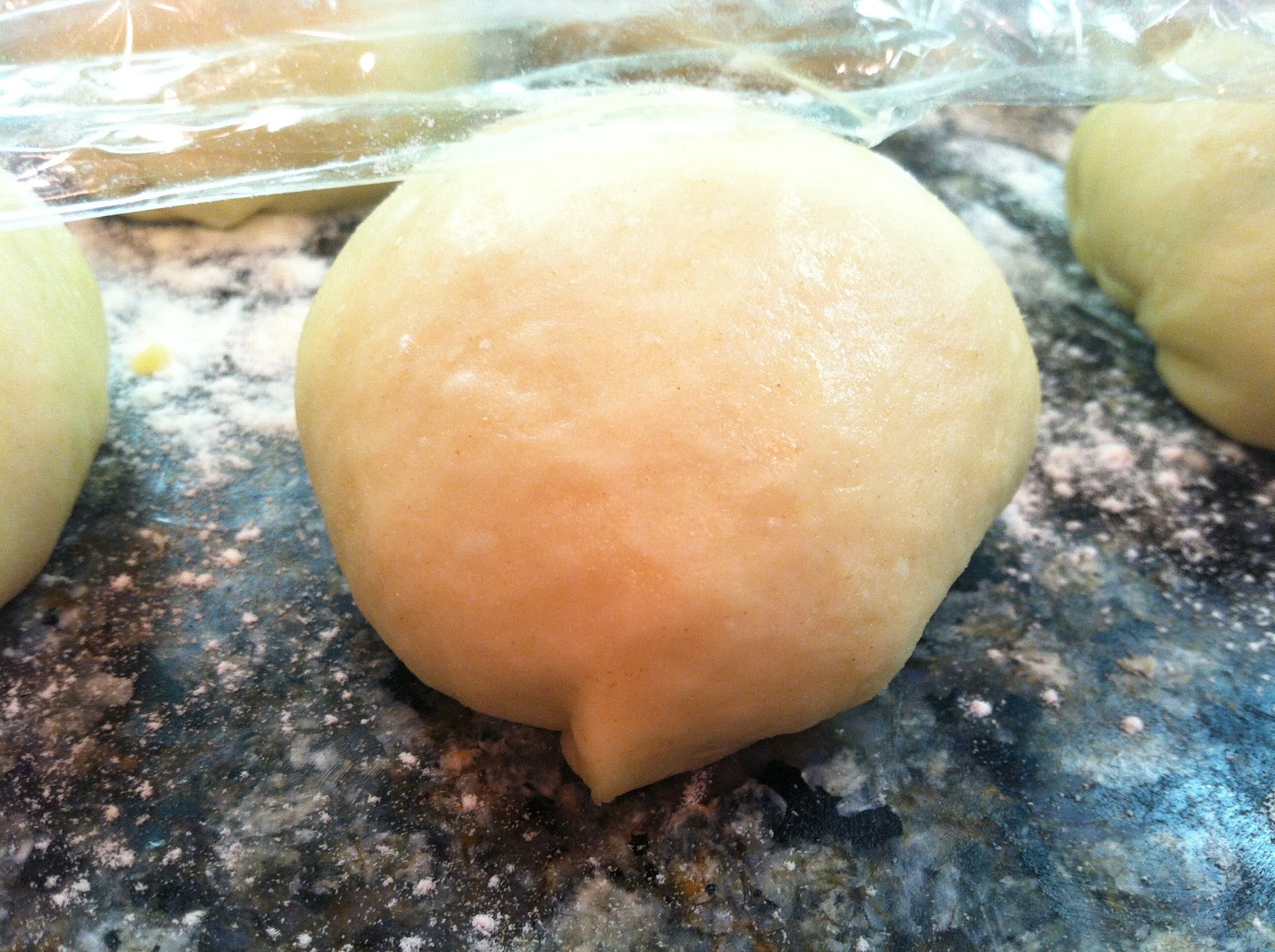 5. Using a pastry cutter, cut into equal-sized balls (I measured the entire dough, divided that weight into 12, and made the balls each the same weight)