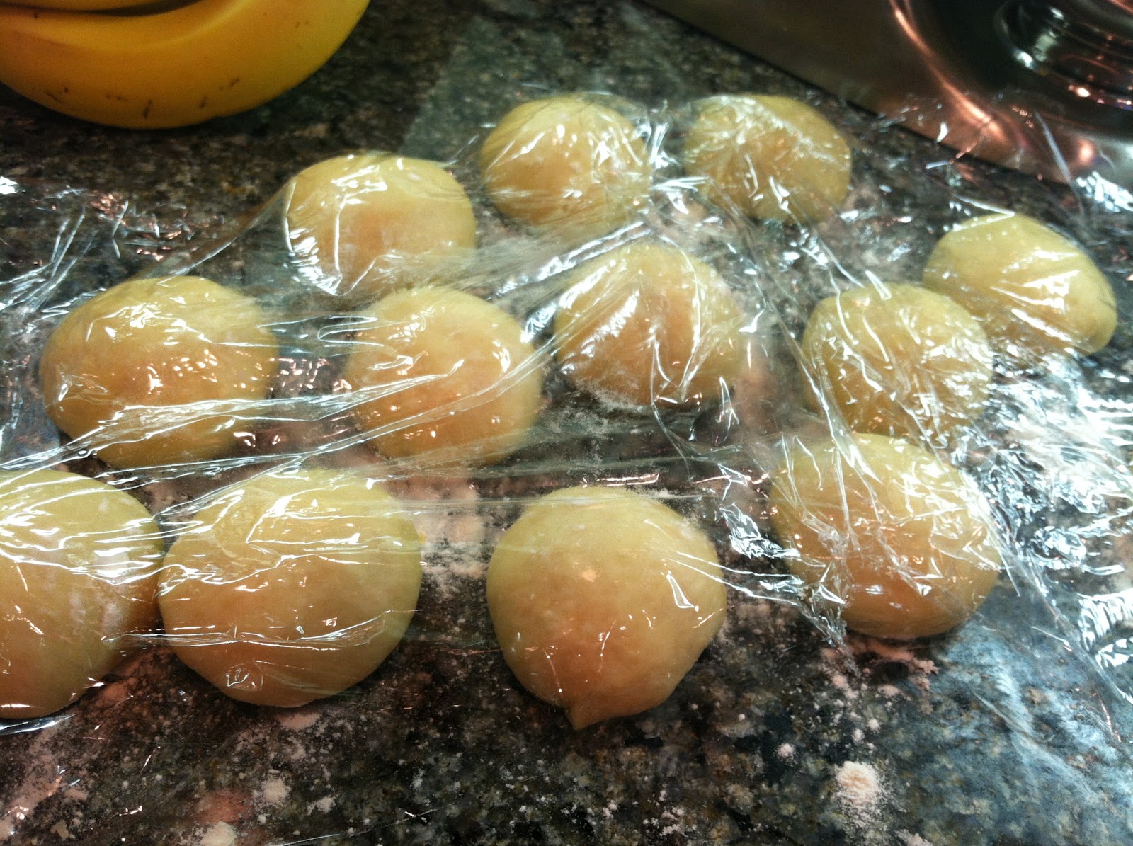 6. Cover the balls with plastic wrap and let sit for an hour.
