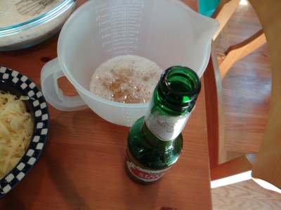1 cup lukewarm beer (I used stella artois because that was the cheapest we had)