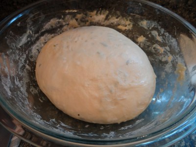 6. Transfer to a clean, lightly-oiled bowl, cover with plastic wrap, and let rise for about 60-90 minutes until doubled in size.