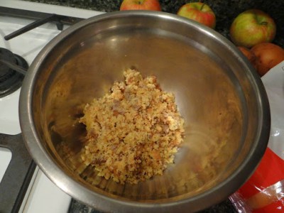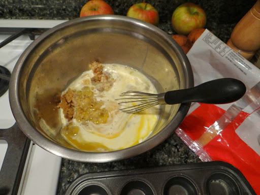 This recipe is loosely based on one by Heather at Kitchen Concoctions. I made them mini instead of regular-sized, used cornbread stuffing instead of regular stuffing, and skipped the spinach since I didn’t have any on hand.