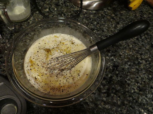 3. Mix together your eggs and cream/milk. Add the salt and pepper.