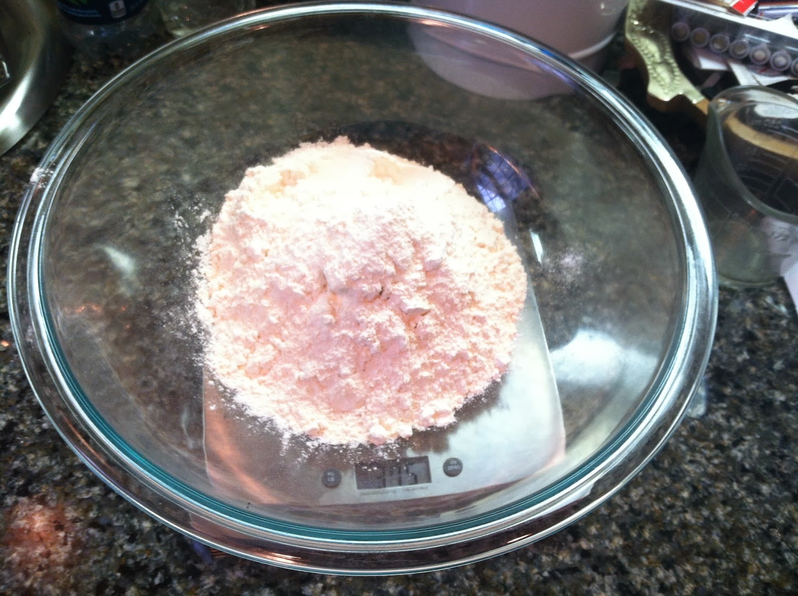1. Weight out your flour in a large bowl. Add the salt and yeast to the flour and whisk thoroughly.