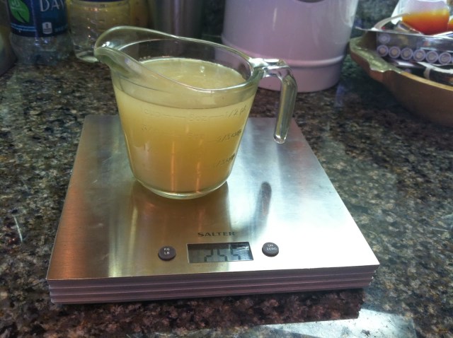 2. Weight out 250g of the bean water, keeping some on hand in case you need it. As you can see, it’ll be about one cup.