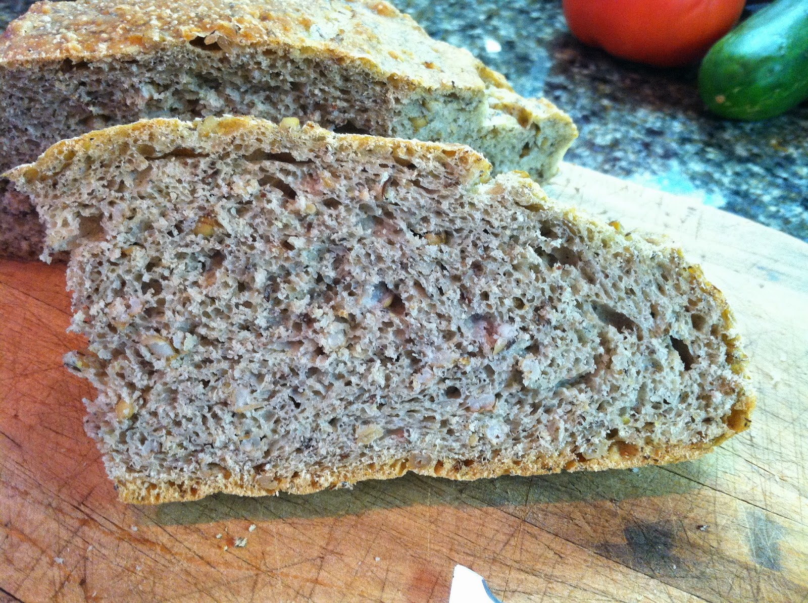 And here it is sliced. You can see the barley grains too. This bread is fantastic toasted with peanut butter for breakfast.