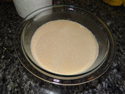 1. In a small bowl, sprinkle the yeast on top of the milk and let sit for five minutes. If it smells yeasty, it’s working.