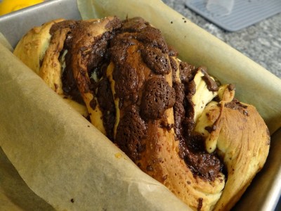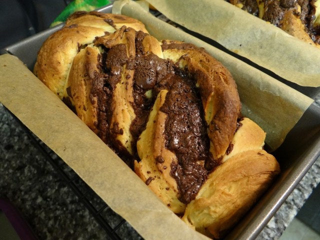 | I didn’t have enough regular chocolate so I added some chili powder chocolate. I was hoping it would give the bread a tiny kick but you really can’t taste it. |