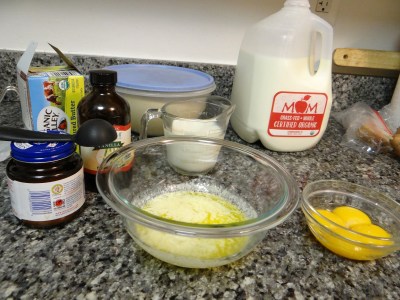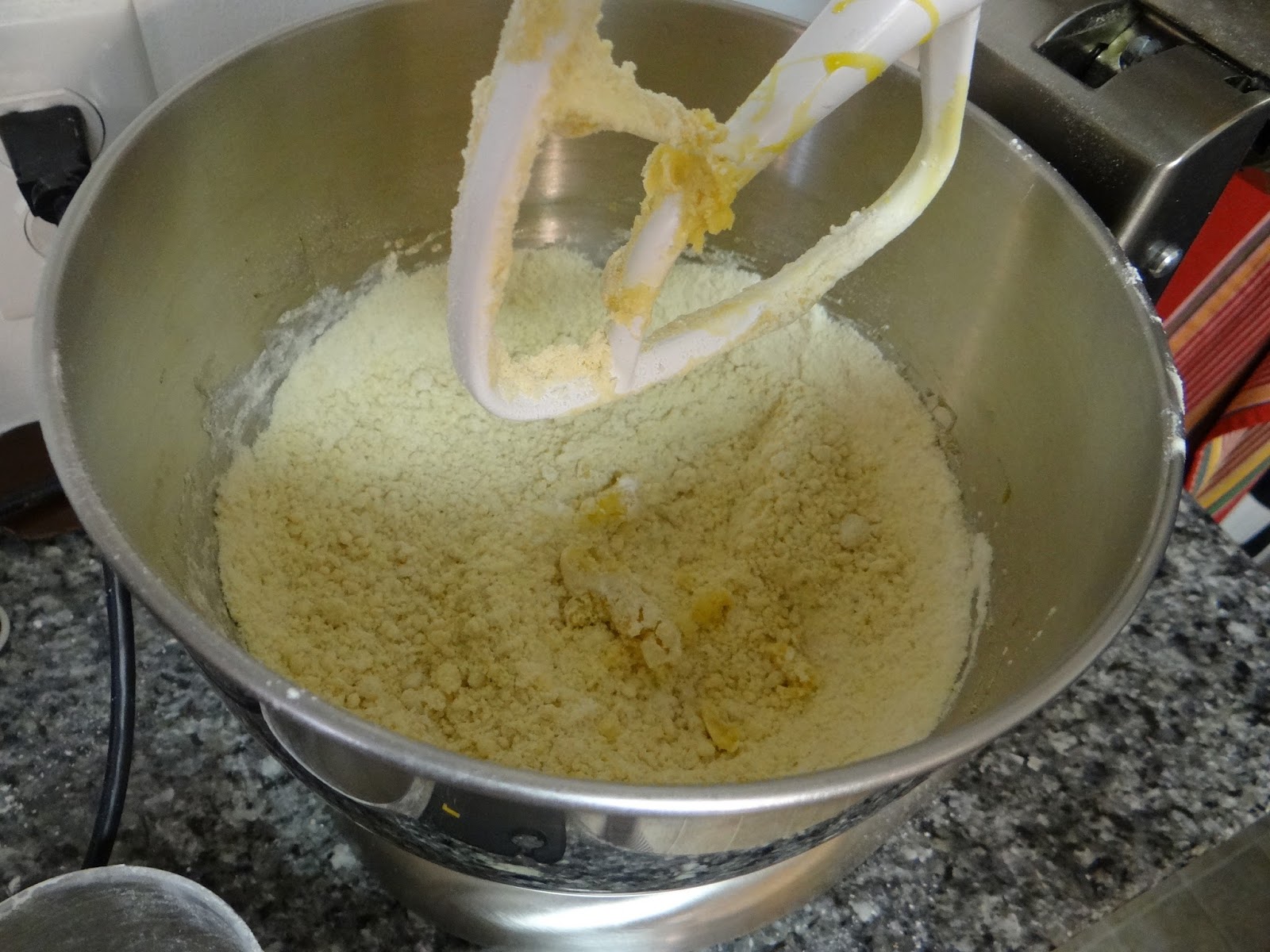 2. In the bowl of a stand mixer, cream together the butter and sugar. add the vanilla to the eggs and then add them one at a time to the butter and sugar mixture. Then add the flour until it is the consistency of bread crumbs.