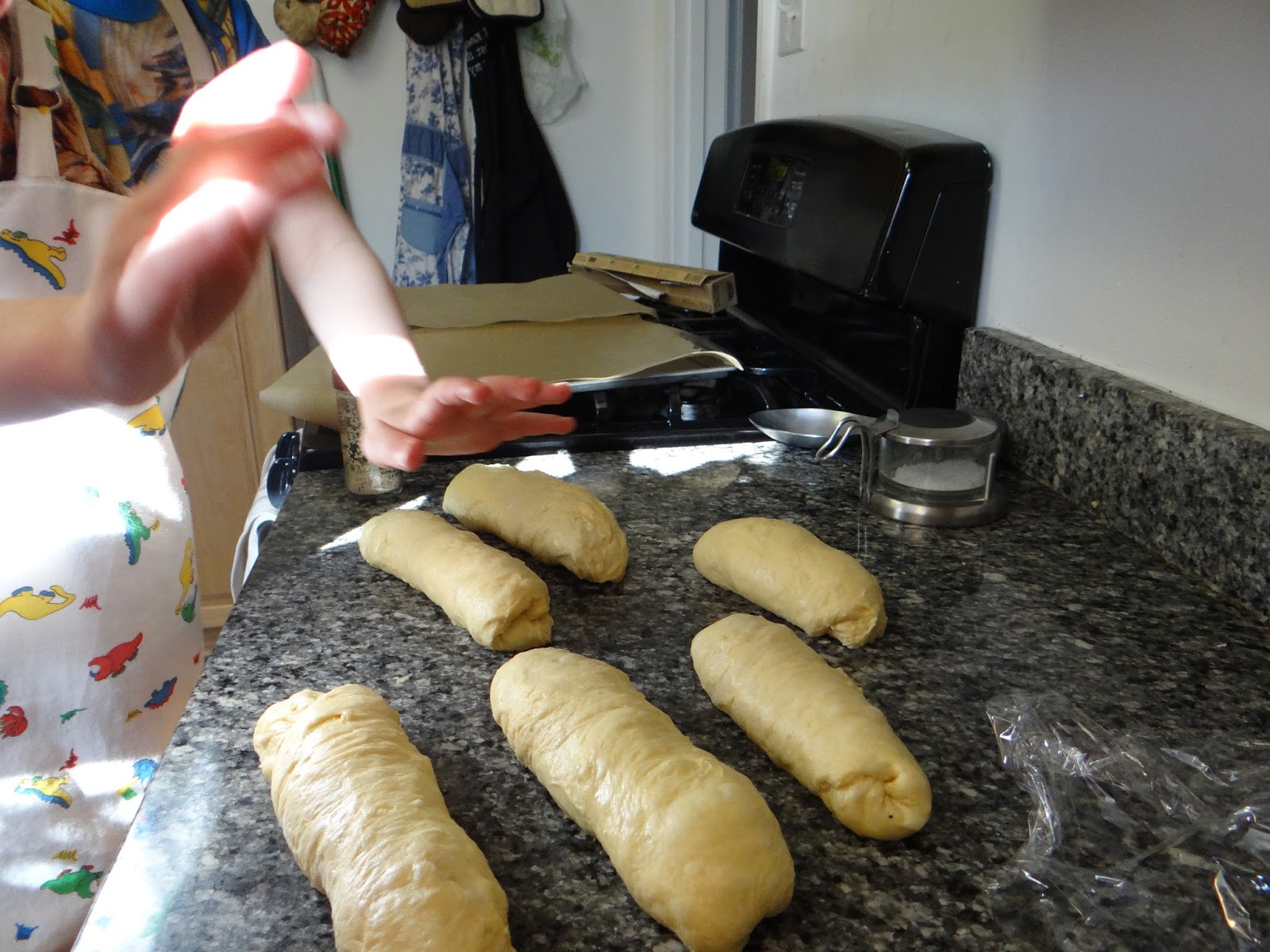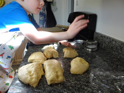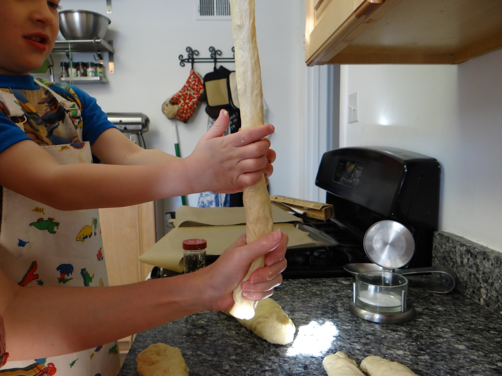 Little Bread Dude has always clamored to cook with me in the kitchen, and now he’s old enough to really feel like he’s making a contribution. It’s not always easy, quick or clean to have him “help,” but he gets so much satisfaction out of it, and I’m able to see him getting better and more confident. Since baking with him, I’ve also gotten more relaxed and am able to enjoy the process. He helps me see things differently, such as how sometimes your rolls are actually a drum kit: