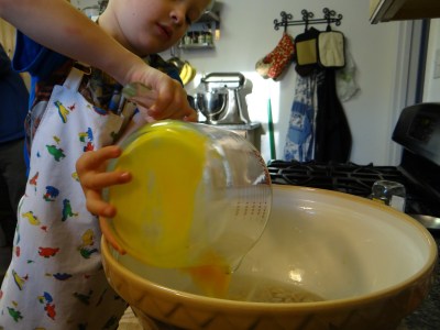 #5: Prepare some of the ingredients ahead of time. Little Bread Dude is five years old, which means he has an attention span of about 15 minutes. In order to keep things positive and fun, I make sure his contribution only takes about that long. I get the ingredients out and set them on the counter ahead of time, and if there’s an ingredient I know he doesn’t like preparing, I’ll do it first so all he has to do is dump everything into the bowl. For example, he doesn’t like breaking eggs (this recipe requires a ton of egg yolks). So I’ll separate the eggs and put them all in a bowl for him to dump.