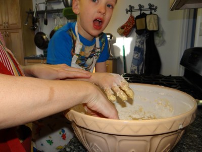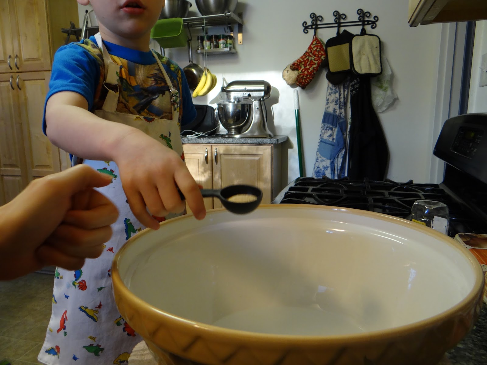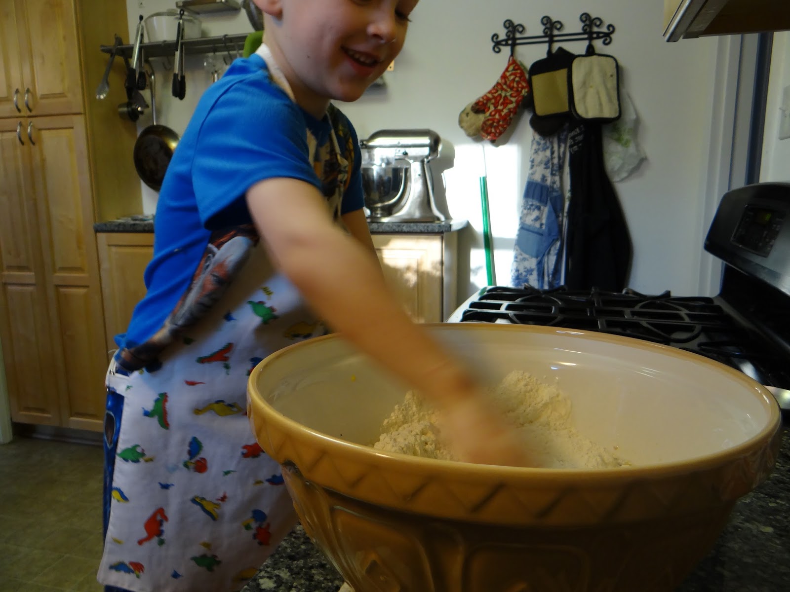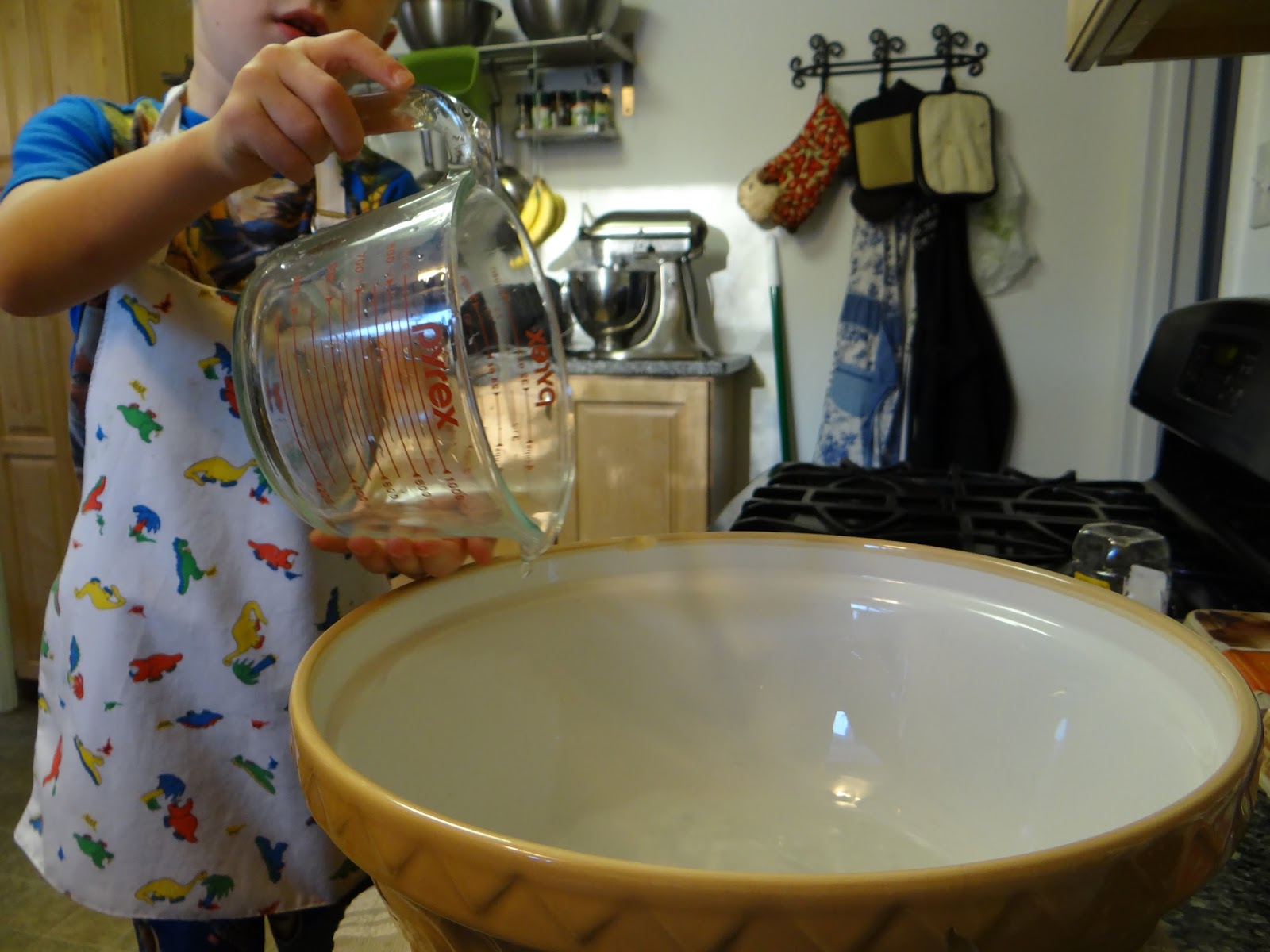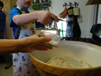 This is a recipe we made twice this week, since Little Bread Dude has been off school due to Snowzilla. He decided he wanted to make bread for his friends at Sunday School, picked the recipe and helped with almost every step. Along the way, I cataloged some tips about baking with kids.
