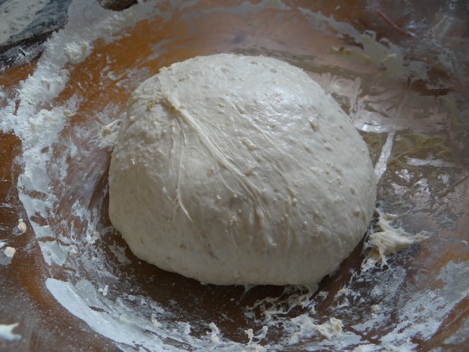 3. Do a few stretch and folds to strengthen the gluten. Notice how much smoother it is. Cover and let rise 1-2 hours.