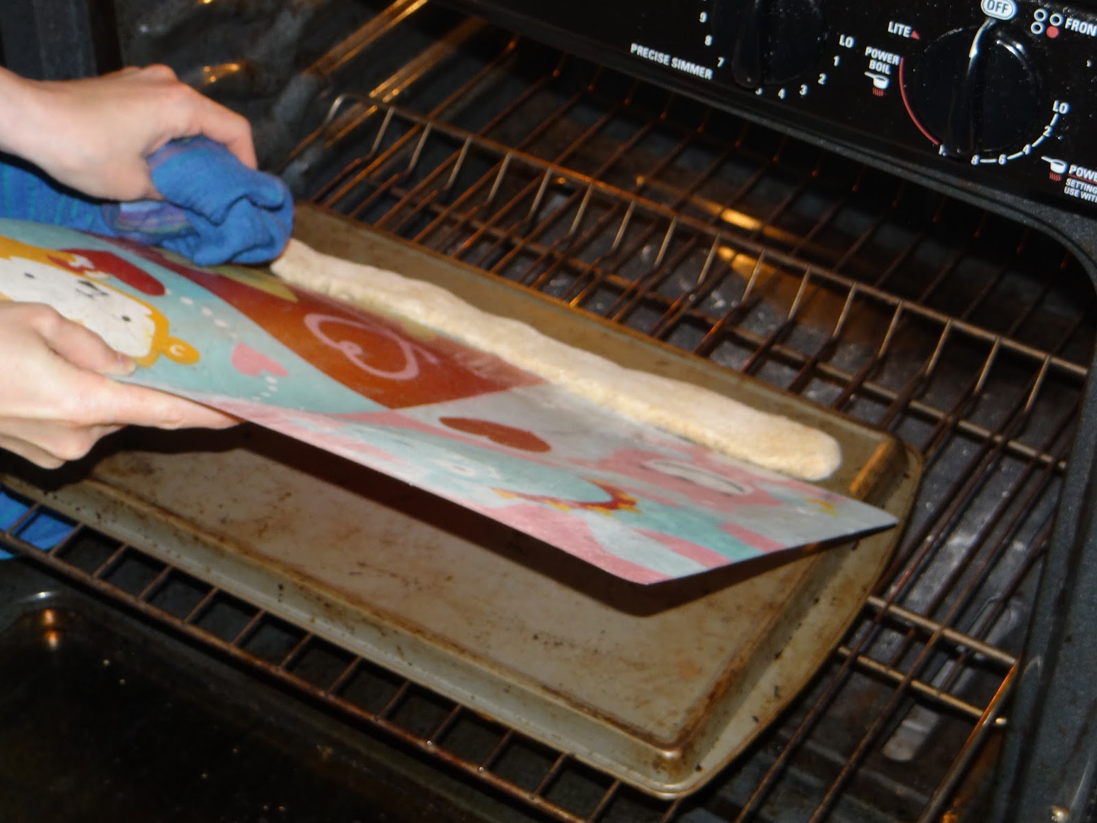 I used a plastic placemat as a peel to transfer the dough to the oven.