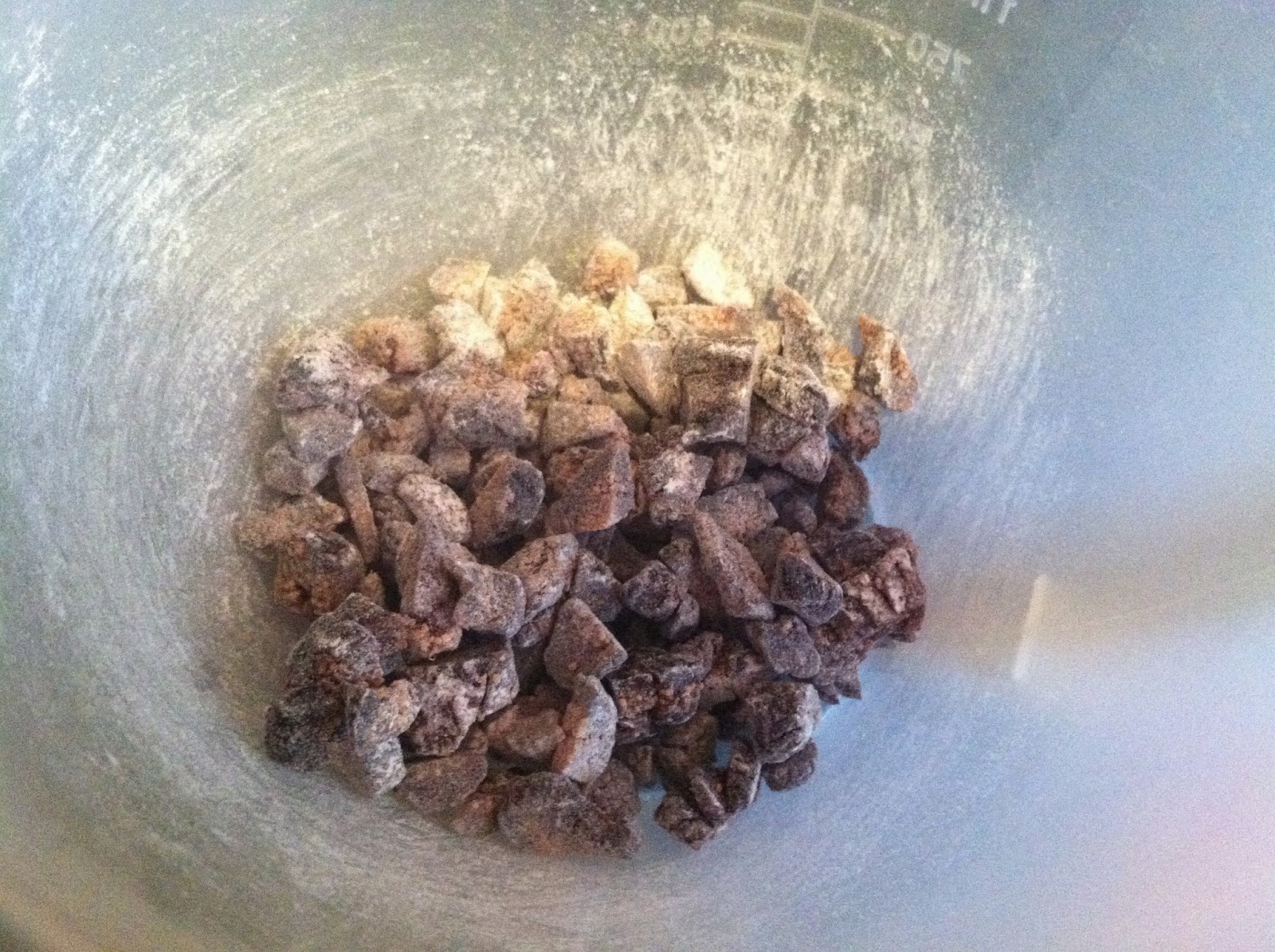 5. Take a tablespoon of flour and mix it with the chopped figs until they are fully coated with the flour.