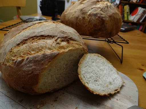Wow, I’m really making this bread my own. This week I kept increasing the hydration of the dough, and remembered to divide it into three loaves this time. Forgot the oil but it’s not needed. I also remembered to proof the yeast in a lidded tupperware so that I could shake it up, but I don’t know if it’s a necessary step so I’ll probably skip it when I’m done with this baking project.