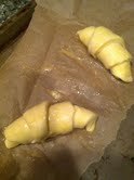 These are amazing. SOOO tender and flaky. They almost fall apart they are so flaky. Butter oozes out of these and they were incredible warm from the oven. Mr. Bread Maiden, who initially wanted to use the puff pastry for a Beef Wellington, immediately changed his mind in favor of more croissants. While it was definitely time-consuming, I think I would make puff pastry again. Maybe next time I will double the recipe so I can freeze one and use one. I can already see uses for this dough: pies, croissants (of course), strudels, pot pies. Stay tuned.