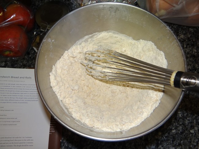 1. Weight out your flour in a large bowl. Add the salt and yeast to the flour and whisk thoroughly.