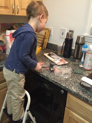 Finally, I feel compelled to once again swear that I do know how to read. There is something about this recipe that makes my brain not want to follow it. Maybe it’s the fact that it’s on a kindle, rather than a printed book. There is no excuse for the fact that over the past three baking sessions, not one time have I faithfully followed his recipe as written. Usually I discover that I’ve done something wrong as I’m glancing over the recipe one last time, mentally checking off all the steps. Then I realize, “D’oh! The couches go in the refrigerator!” or, “D’oh! the water was supposed to be warm, not hot!” It’s frustrating.
